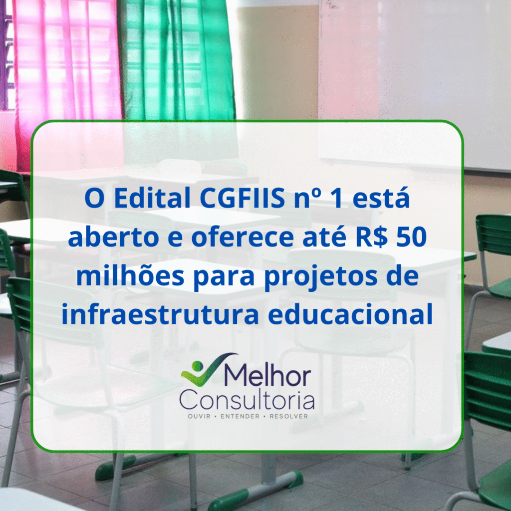 O Comitê Gestor do Fundo Nacional de Investimento em Infraestrutura Social (CGFIIS) lançou o Edital de Chamamento Público nº 1, com foco em projetos de infraestrutura para a educação básica pública. A iniciativa visa ampliar o acesso a serviços essenciais por meio de investimentos em creches, escolas, transporte escolar, conectividade e tecnologia educacional.